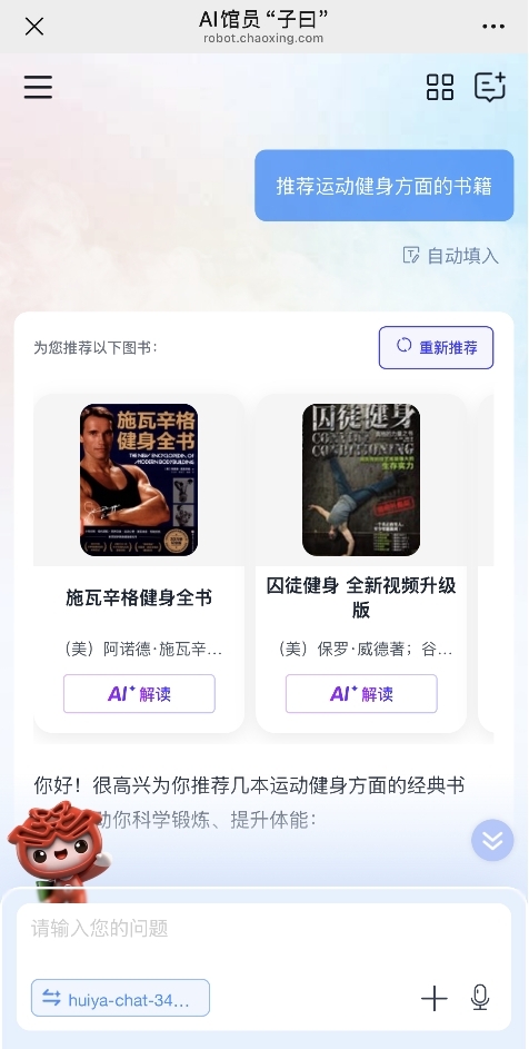 2.热门应用,如AI荐书,你心对“子曰”说:请推荐XXX方面的书籍,即可触发AI荐书。他会根据您的需求,推荐对应书单,并给出推荐理由,供您参考。