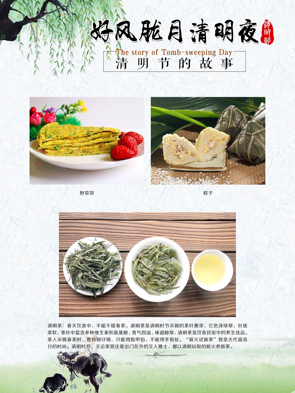 《好风胧月清明夜——清明节的故事》主题展览共分为五个单元:“节日溯源 有容乃大”“同归桑梓 慎终追远”“插柳踏春 环保健身”“清明知味 风俗食物”“吟咏绵延 清明永驻”,其中特别策划了“国共两党公祭黄帝陵”、“毛泽东祭黄帝陵文”、“孙中山题词黄帝陵”、国家非物质文化遗产项目“大槐树祭祖习俗”、互动体验“网上祭英烈”和“踏青赏景找不同”六大看点,让您全方位多层次地体验清明节的文化内涵与风姿魅力。 春生孳乳,万物繁炽,天明地洁,气象清朗。时值农历阳春三月,清明节到来之际,我们特别举办此展览,以期在现代文明的催护下,共守传统文化根脉,共勉文明传承重任,为推动社会主义文化繁荣兴盛,贡献我们的智慧和力量。愿清明常在,民族不老。