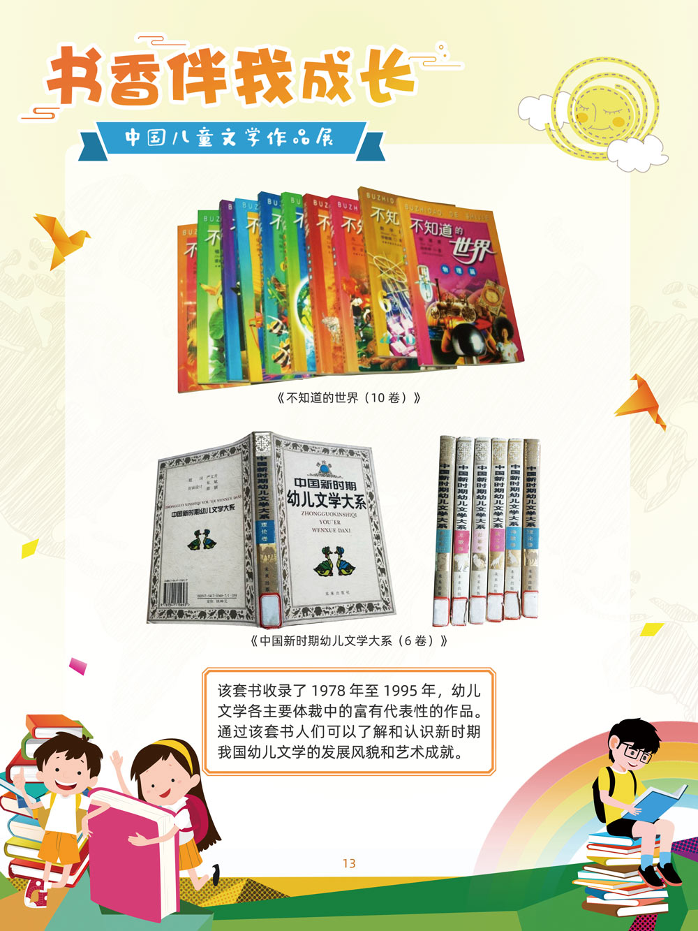 人之初,性本善。儿童文学是人生最早接受的文学。那些曾经深深感动过少年儿童的作品,将使人终身难忘,终生受惠。在今天这个传媒多元的时代,我们特别需要向广大少年儿童提倡文学阅读。 对孩子来说,一本好书,在带给他们欢笑与感动的同时,也可以帮助他们搭建起一个丰富多彩的心灵世界,以文字为窗口,孩子们可以凭窗远眺,放眼望去,皆是瑰丽多姿的世间万物。 以童趣笔调,描孩子的天真生活,以新颖视角,投射孩子的奇妙想象,在这些趣味盎然的书籍里,我们陪伴孩子一起阅读思考,探索认识这个世界的温柔与善良。 在“六一”儿童节到来之际,此次展览将最好的儿童文学作品介绍给广大少年儿童通过介绍荣获国际安徒生奖、国家图书奖、宋庆龄儿童文学奖、冰心儿童文学新作奖、陈伯吹国际儿童文学奖、全国儿童文学奖的部分优秀获奖作品,让孩子们通过阅读,赏和领略不同文学大师的风格,感受各种儿童文学大奖作品的魅力,寻找记忆深处的纯真,也让这些儿童文化作品点亮孩子们的梦想。