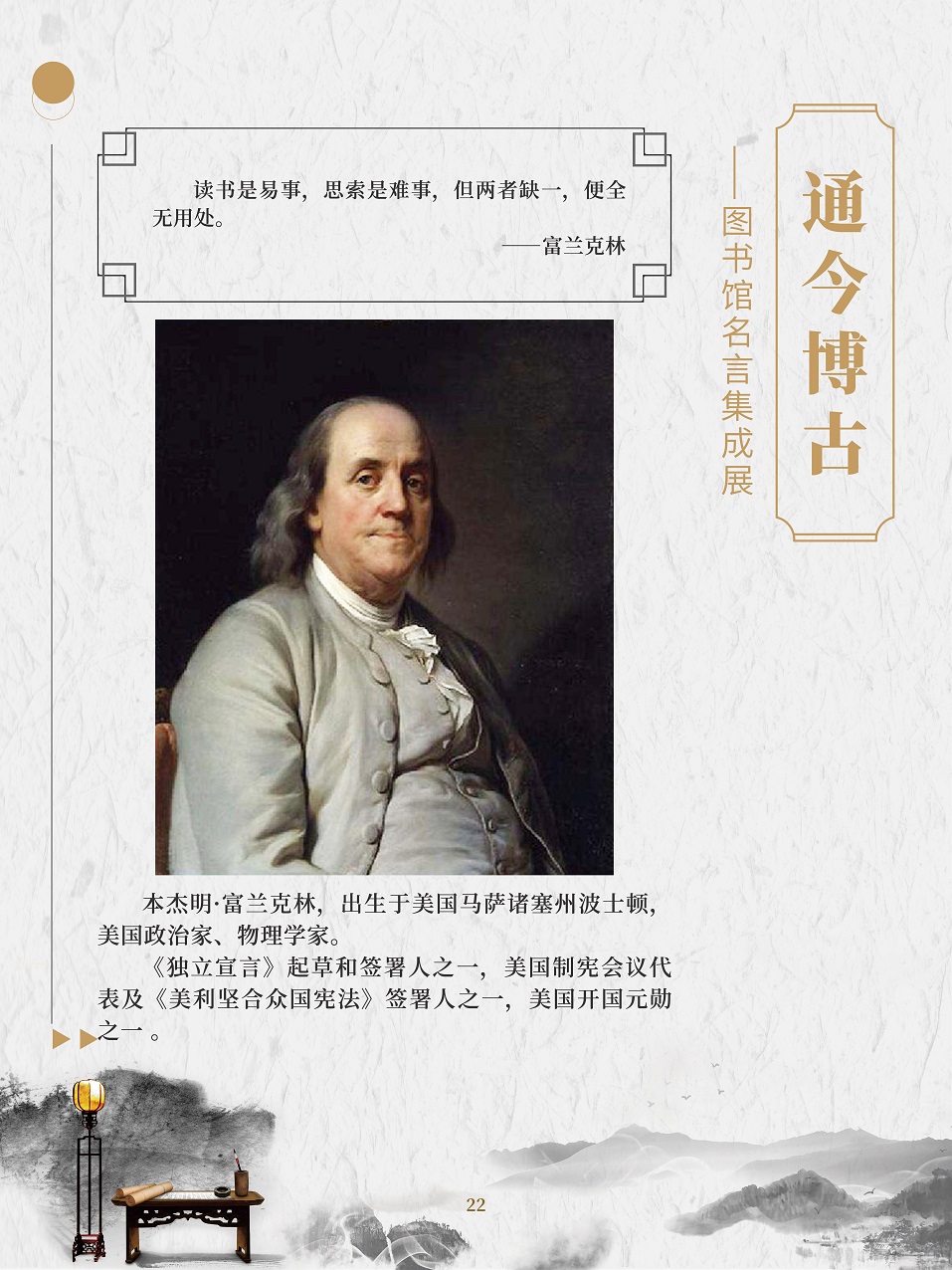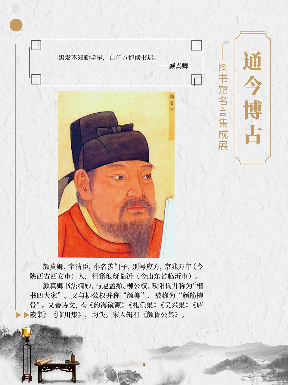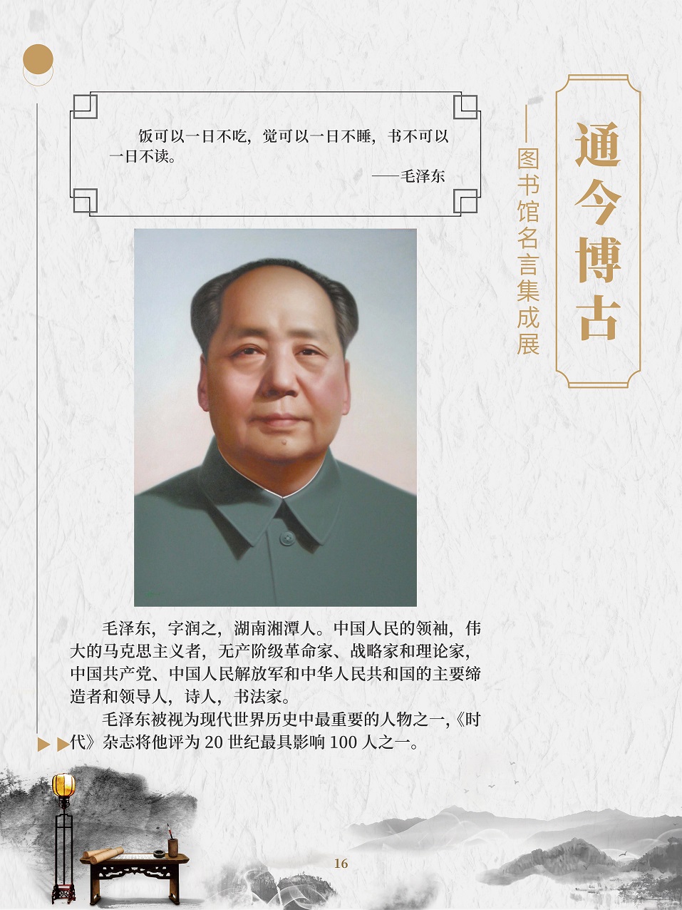 名人名言是人类思想的精华,智慧的结晶。面对书海浩瀚,语林苍茫,感悟名人名言,对于每个人来说,都是明智的选择。一句句铿锵有力的名言,就是一个个思想火花,可以点燃青春的热情,激发人们的奋斗精神;一句句闪烁着智慧光芒的名人名言,就像一座座人生的灯塔,照耀着人们前进的道路。 在2020年“4·23世界读书日”来临之际,为了倡导全民阅读,引导广大群众逐步形成爱读书、多读书、读好书的阅读习惯,特举办此展览。展览以“读书与学习”为主题的名人名言为主线,让广大观众领略古今中外名人名言的内涵和风采。 “最是书香能致远,唯有读书方宁静”,建设学习型社会应该从阅读开始。一个善于阅读的人一定会成为有前途的人,一个善于阅读的民族一定会成为有希望的民族,一个善于阅读的国家一定会成为不断发展壮大的国家!