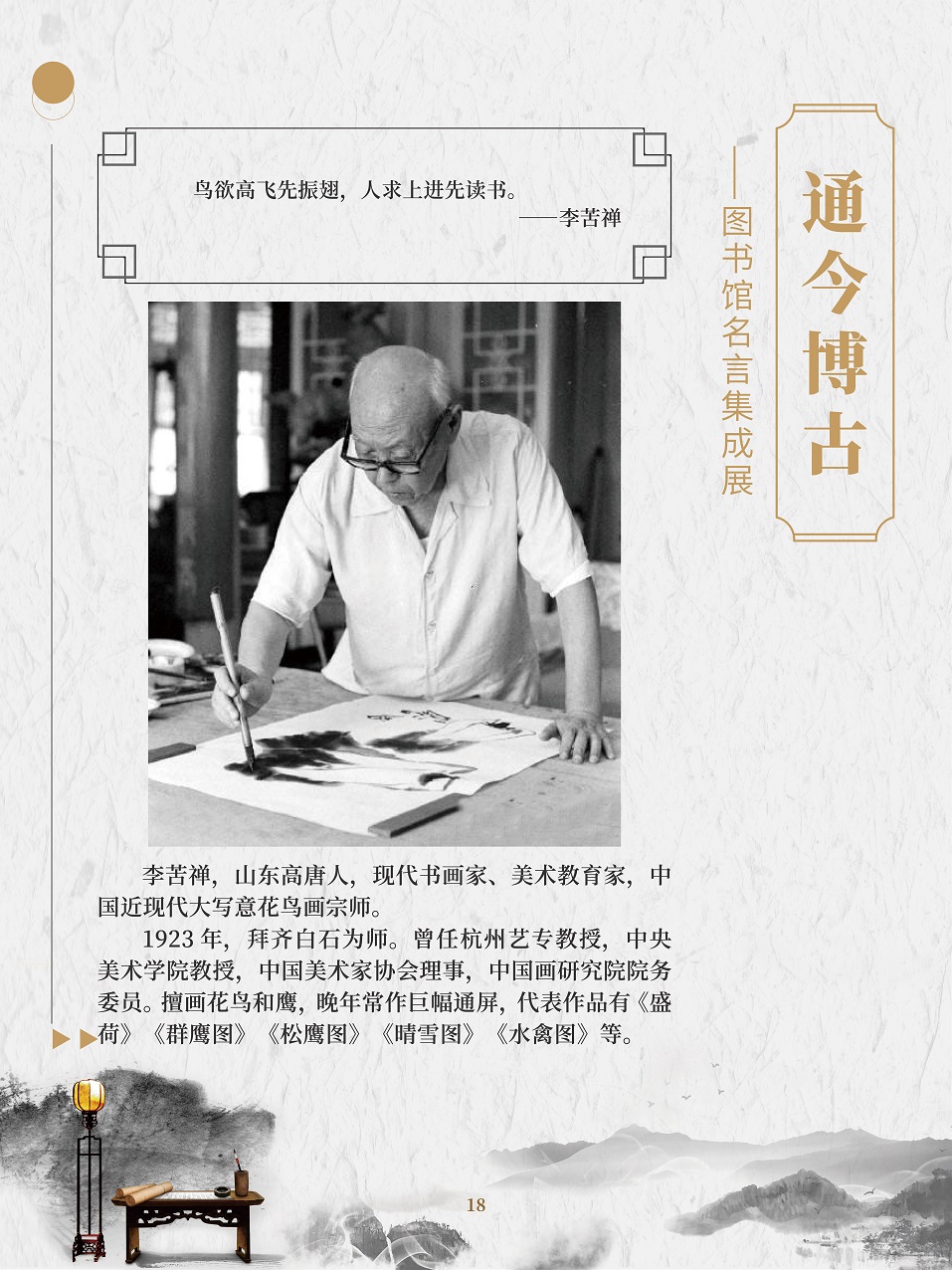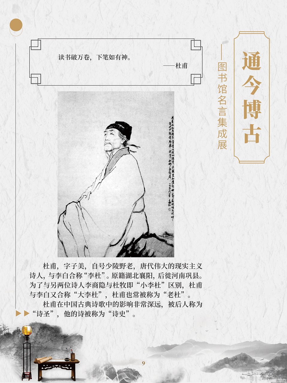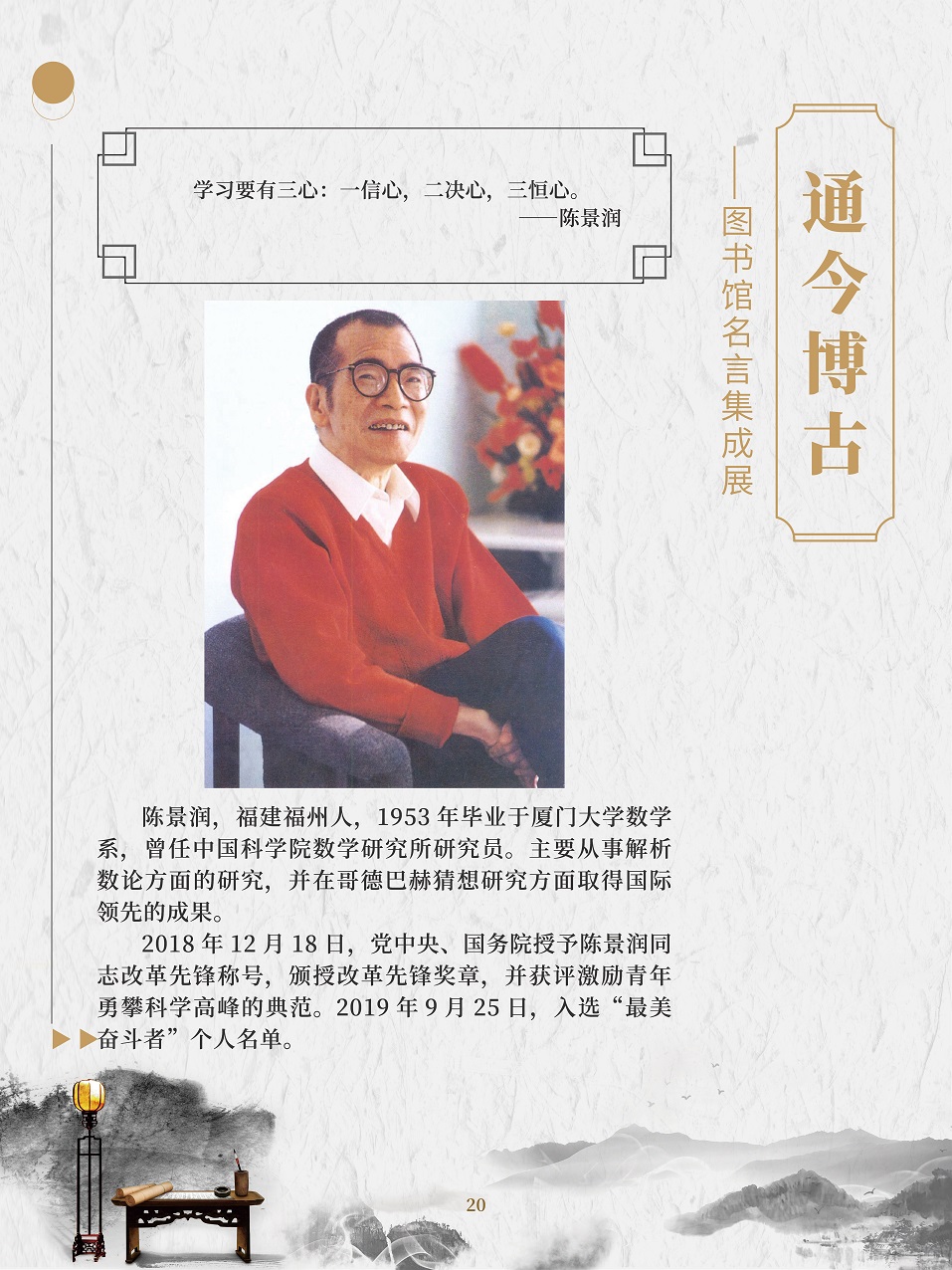 名人名言是人类思想的精华,智慧的结晶。面对书海浩瀚,语林苍茫,感悟名人名言,对于每个人来说,都是明智的选择。一句句铿锵有力的名言,就是一个个思想火花,可以点燃青春的热情,激发人们的奋斗精神;一句句闪烁着智慧光芒的名人名言,就像一座座人生的灯塔,照耀着人们前进的道路。 在2020年“4·23世界读书日”来临之际,为了倡导全民阅读,引导广大群众逐步形成爱读书、多读书、读好书的阅读习惯,特举办此展览。展览以“读书与学习”为主题的名人名言为主线,让广大观众领略古今中外名人名言的内涵和风采。 “最是书香能致远,唯有读书方宁静”,建设学习型社会应该从阅读开始。一个善于阅读的人一定会成为有前途的人,一个善于阅读的民族一定会成为有希望的民族,一个善于阅读的国家一定会成为不断发展壮大的国家!