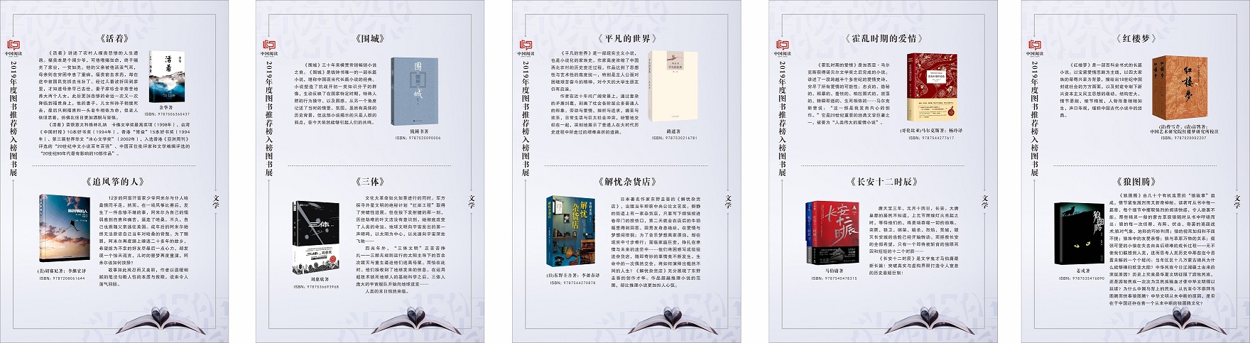 为深入贯彻落实习近平总书记给国图老专家回信精神,引导、协调和组织全国各级各类图书馆全面推动全民阅读,将图书馆优质资源惠及大众,更好满足人民精神文化需求,中国图书馆学会与中共杭州市委宣传部联合开展了“中国阅读”2019年度图书推荐榜活动。活动依托全国各级公共图书馆各类图书借阅基础数据,并参考各类图书销售数据,组织图书馆、出版、评论等各界知名专家参与研议,并于2020年4月23日世界读书日期间推出7个子榜单共70种图书进入“中国阅读”2019年度图书推荐榜。