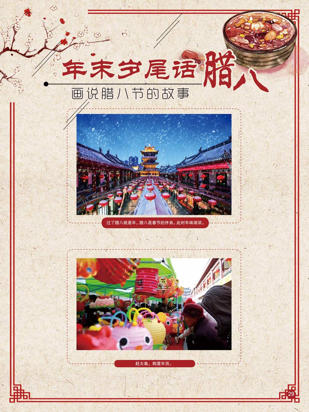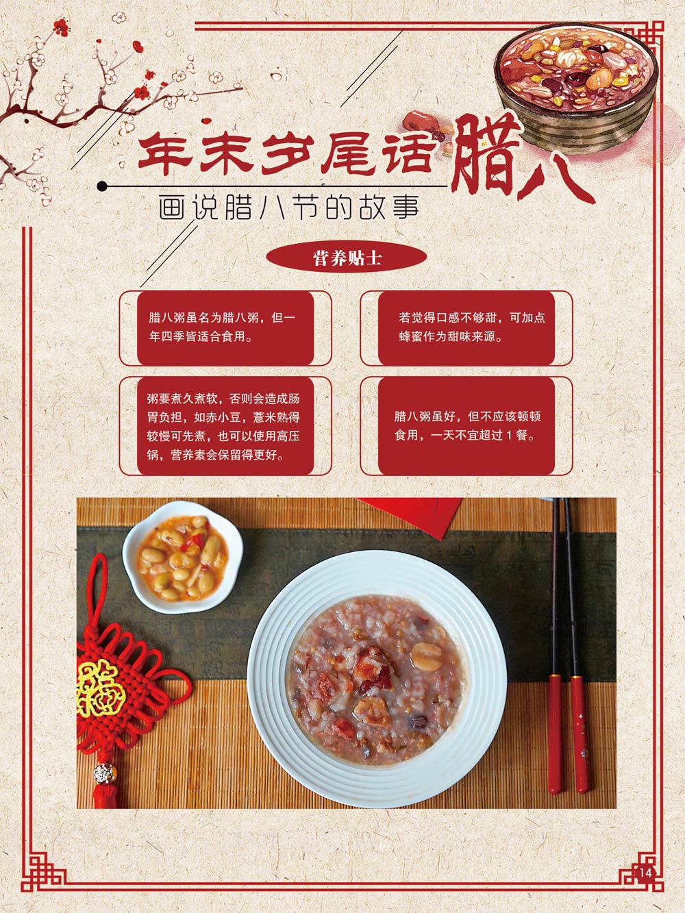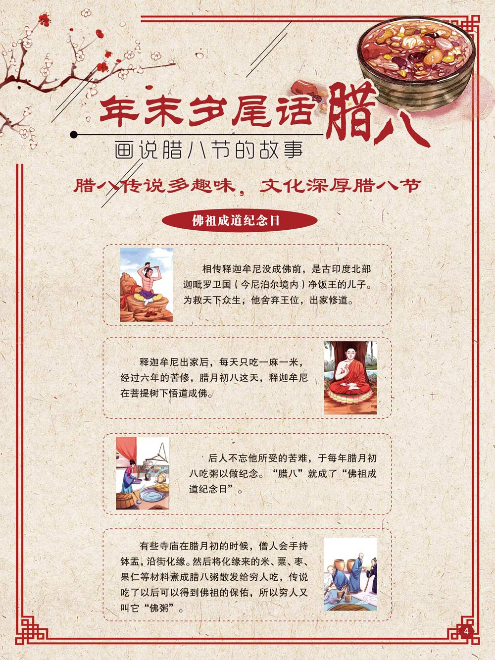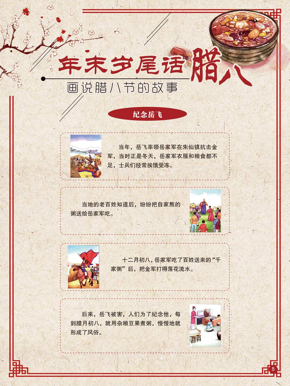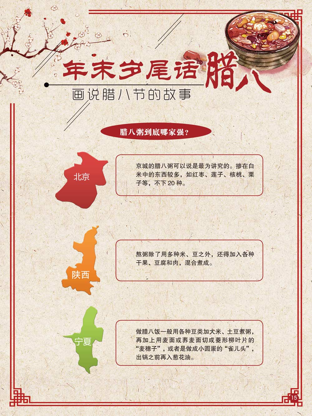 节令文化是我国传统文化的重要组成部分,极具浓郁的中华民族特色。节令作为祖先留给我们最宝贵的民族文化基因,至今依然鲜活地伴随着我们。春节、元宵、清明、端午、中秋、重阳、腊八……每一个传统节日都有其独特的习俗和意蕴。不管时空怎样转变,在全世界中华儿女的心里,传统节令就是让个体生命丰厚,让民族集体意识升华的一个载体和结点。 “腊八”在春节之前:春为岁首,一元复始,万象更新,人们常常会因为春节的特殊隆重而忽略“腊八”,其实“腊八”恰是春节的序幕,是人们辞旧迎新的开始。“腊八”历史悠久,最初没有固定的日期,直至南北朝时才将“腊八”定在每年的农历十二月初八。这一天有很多富有民族特色的风俗,如熬腊八粥、做腊八面、泡腊八蒜等。在节令文化里,腊八节承载着亲情友情的感动和对美好生活的向往。 本展览旨在传播弘扬中国传统的节令文化——腊八节,在深入挖掘和整理腊八节文化成果的同时,结合社会发展,注入时代精神,以简明通俗的语言、图文并茂的形式,把腊八节文化的内涵和底蕴全面展示给读者,为弘扬中华优秀传统文化尽一份绵薄之力。
