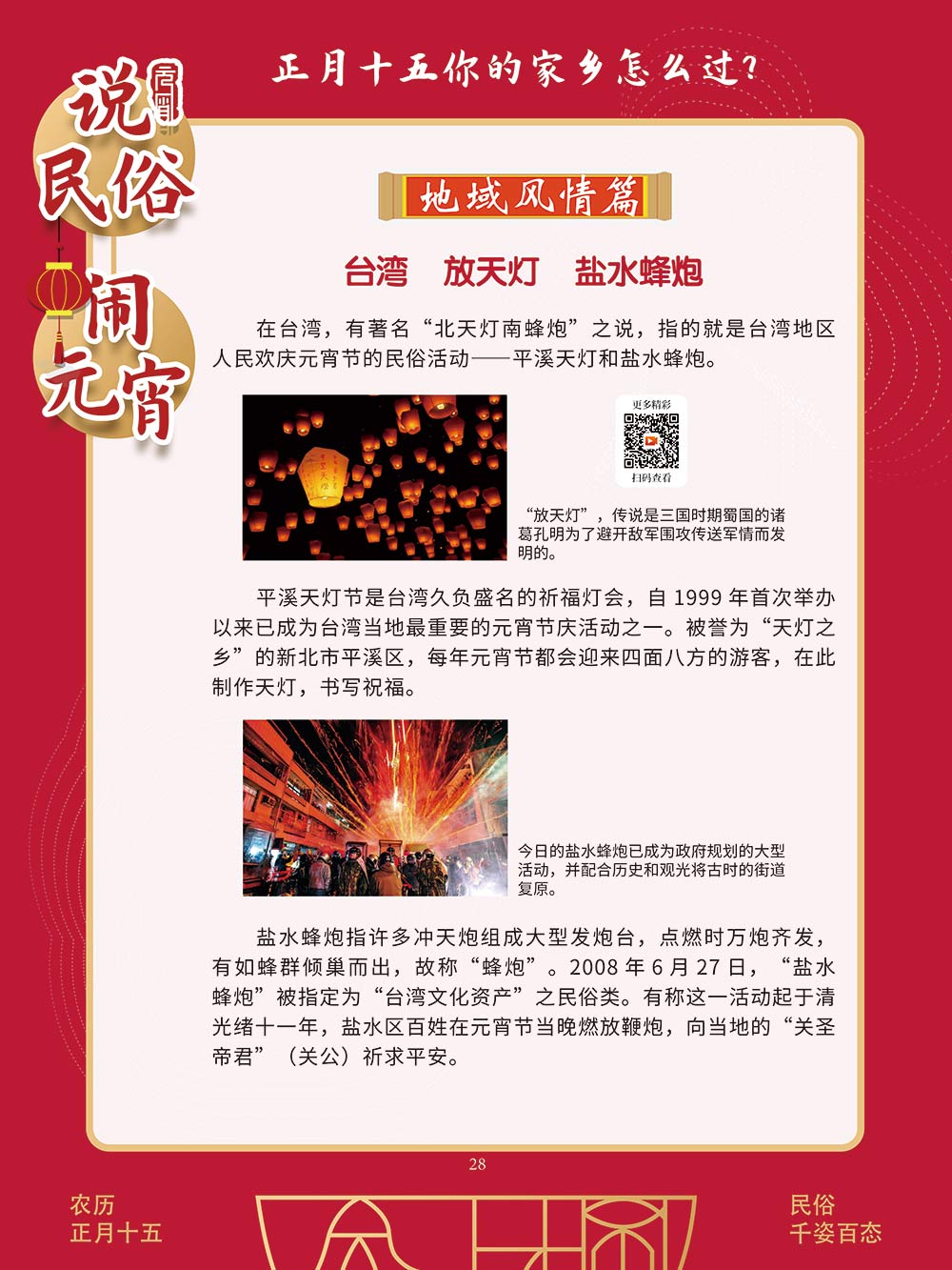 每年的正月十五这一天,赏花灯、猜灯谜、吃元宵、放烟花、耍龙灯、舞狮子、踩高跷、划旱船……这些衍生于汉民族传统习俗的节日活动接连上演,随处可见一派欢天喜地、热闹非凡。然而在幅员辽阔、地广物博的中华大地上,不同的民族和地域也形成了许多独具特色的元宵节习俗,其中很多都已被列为国家级非物质文化遗产。 这些从农耕文明孕育而来的岁时节俗,千百年来,孕育和滋养了博大而丰富的中国传统文化。它们经历了千百年漫长而复杂的发展变迁、代代相传,凝聚了中国劳动人民的智慧结晶,闪烁着中华民族的文明之光。 在西方节日流行的当下,我们对这些中华民族的灿烂民俗文化瑰宝又了解多少呢?是时候让灿烂的民俗真正“闹”起来,让传统节日融入当下的大众生活,在保留原有文化底蕴的基础上,从内容和形式上注入更符合现代潮流的创新元素,唤回年轻人们的关注。 正月十五你的家乡怎么过?不妨借此元宵佳节之际,让我们一起来说民族闹元宵,比一比究竟哪里的年味最浓!