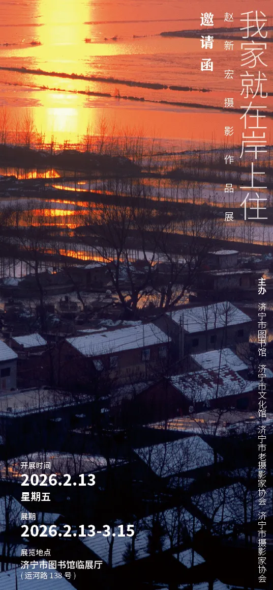 由济宁市图书馆、济宁市文化馆、济宁市老摄影家协会、济宁市摄影家协会联合主办的“我家就在岸上住——赵新宏摄影作品展”将于2月13日正式拉开帷幕。本次展览展出著名摄影家赵新宏先生历时近半个世纪创作的百余幅纪实摄影作品。拍摄足迹遍布微山湖畔、运河两岸及嘉祥、泗水、邹城、梁山等地,以深厚的人文视角与持续的现实关注,系统呈现了运河沿岸的自然风貌、百姓生活、非遗技艺与时代变迁。 岸是家园,河是脐带, 人是主体,烟火是灵魂。 展览以“我家就在岸上住”为主题,聚焦于“河、岸、人、家”的情感联结与文化传承。作品内容涵盖渔家日常、传统手工艺、民间礼俗、市井生活等多个方面,既有微山湖鱼鹰捕鱼、湖上婚礼等鲜活非遗场景的记录,也有岸上人家朴素真实的生存状态与岁月沉淀。影像平实而深刻,温暖而有力,在真实的光影中延续着鲁西南的文化根脉,也勾勒出一幅生动绵长的人文画卷。 赵新宏先生四十余年扎根乡土,始终以镜头记录时代、留存记忆。其作品不仅具有珍贵的文献价值与艺术感染力,更体现了一位摄影家对故土的深情守望与文化担当。展览旨在通过影像的力量,唤起公众对运河文化、家园记忆的认同与珍视,传递“文脉永续、水韵流光”的深远意涵。 聆听无声的美 岁月不语 欢迎广大市民前往观展,一同走进这段光影交织的岁月长河,感受运河之都的温暖底色与不息生命力。 展览时间:2月13日-3月15日 展览地点:济宁市图书馆临展厅