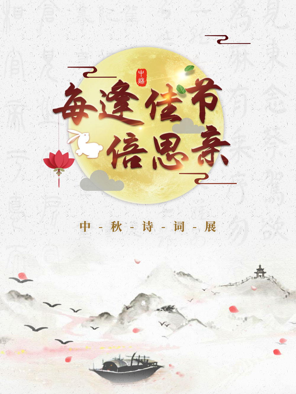 每年农历的八月十五日为我国传统节日中秋节,又称“八月节”。“中秋”一词始见于《周礼》,名称的由来,是因“此日三秋恰半,故谓之‘中秋’”。中秋节则源于古人秋天祭月。《礼记》记载:“天子……秋夕月。”“夕月”,即拜月。 中秋节形成于唐代。五代王仁裕《开元天宝遗事》记载唐明皇和杨贵妃八月十五夜临太液池,“筑百尺高台”赏月。由此,群臣赏月成风,延及民间。到宋代,中秋赏月已是普遍的社会习俗了。明清时期赏月尤甚,直至于今日。 中秋除了拜月、赏月,又有吃月饼、“走月亮”、观潮等风俗。明代田汝成《西湖游览志》谓:“中秋民间以月饼相遗,取团圆之义。”在清代,有些地方流行“走月亮”的风俗,妇女在中秋之夜,通宵出游踏月,直到鸡鸣。有的地方因地理条件原因,有中秋观江涛的活动,如浙江在中秋前后有观钱塘潮的风俗。与中秋赏月有关,还产生了许多有关月宫的美丽传说,如嫦娥奔月,游月宫,月中桂树、玉兔、蟾蜍等等。 本展览所选的四十余首中秋古诗词,其整体风貌多表达个人的愁思与对人情事理的哲理思考,但都落脚于对团圆、安宁的幸福生活的期望,以及对人类美好生存环境的祈盼,充分表现了中秋佳节家国团圆的内涵,读者可以细细品味。
