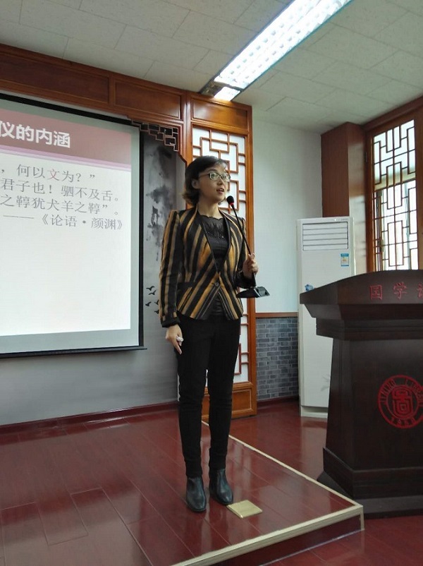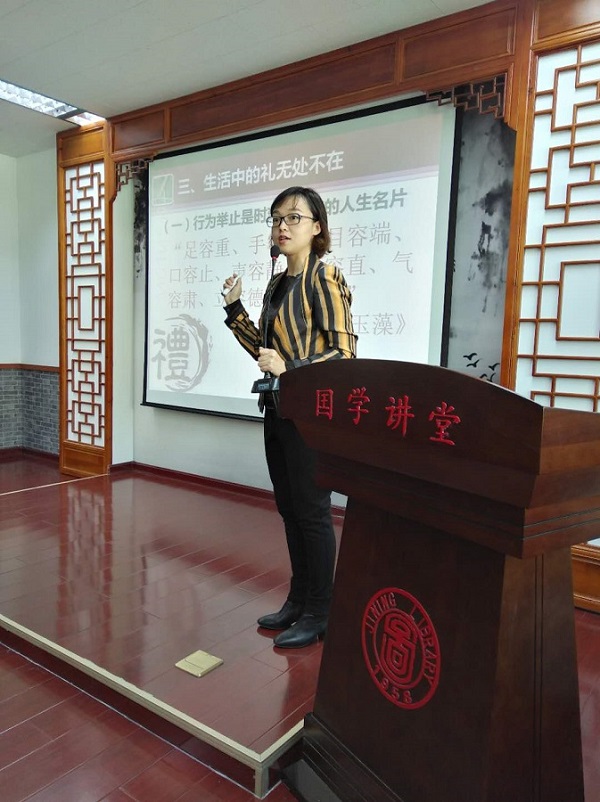 主讲老师皮小卉分别从中国传统礼仪内涵、现代社会礼仪修养以及生活中的礼仪三个方面细致的讲解礼仪知识。从古到今,深入浅出的讲解,让大家在古诗文中了解礼仪的重要性;结合生活中的各种实例,让大家明白礼仪在社会交往中的意义;从国学到易经,让在场的每一位深深反思生活中的礼仪,为以后的行为举止、个人修养提供指导。