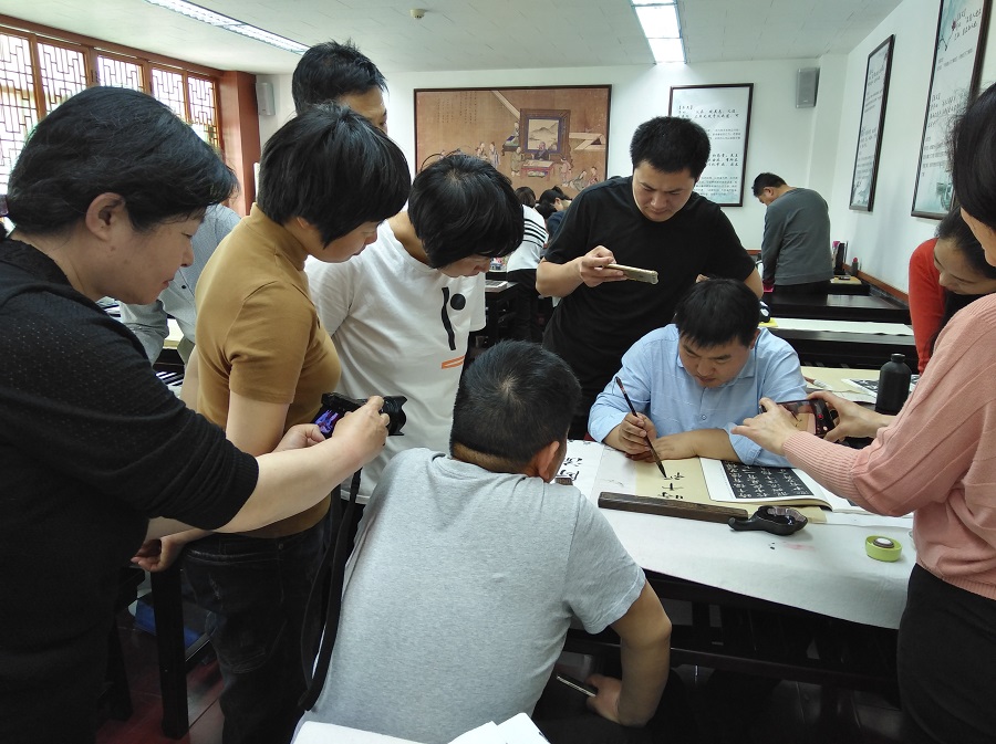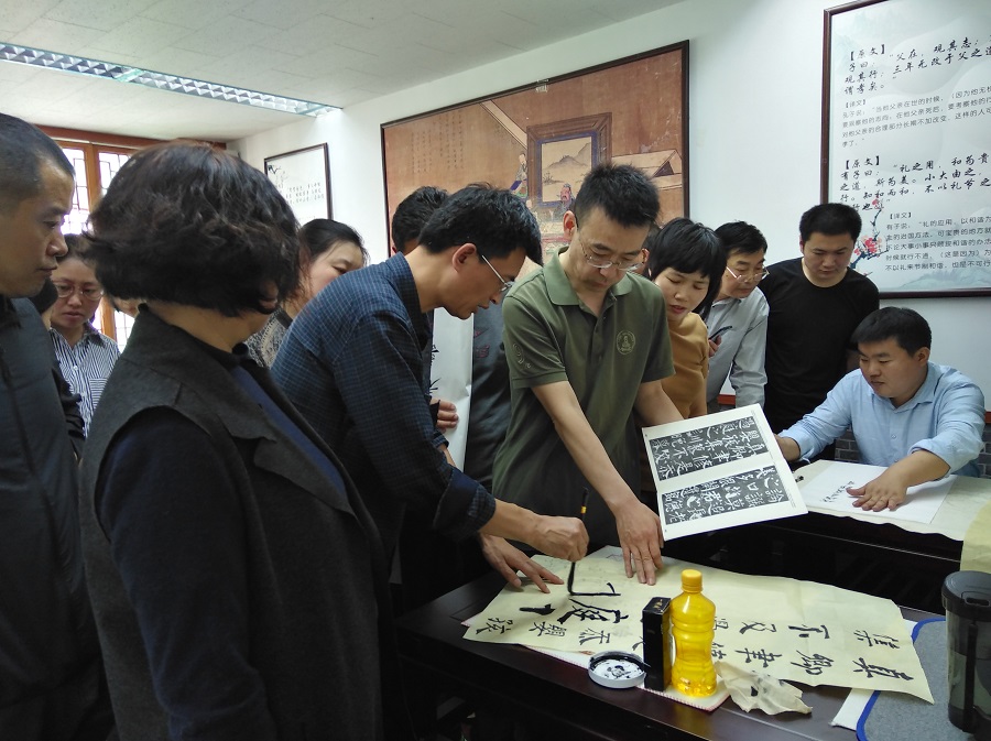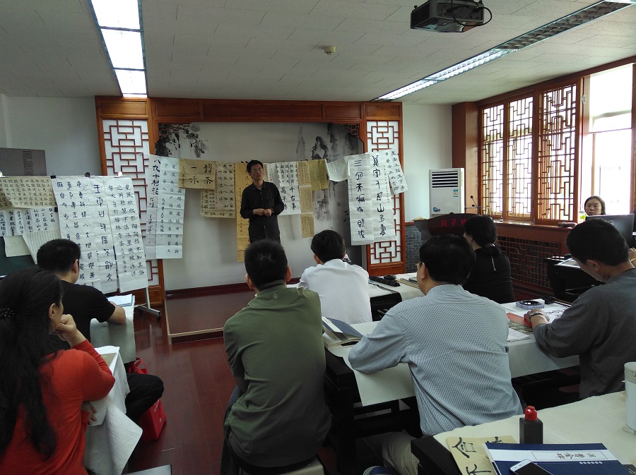 尼山书院公益书法培训班第四课准时开课!大家放弃休假时间,静心在尼山书院听刘培露院长讲书法发、练书法。按照惯例,大家来到后早早地把自己这一周的作业挂在了讲台上,在刘老师的逐一点评中,同学们查缺补漏,虚心学习,争取把“精准临帖”这一步做到最好,课后大家还对刘培露院长和助教杨海阳老师的现场示范进行分享,为下一步的学习找准路子。