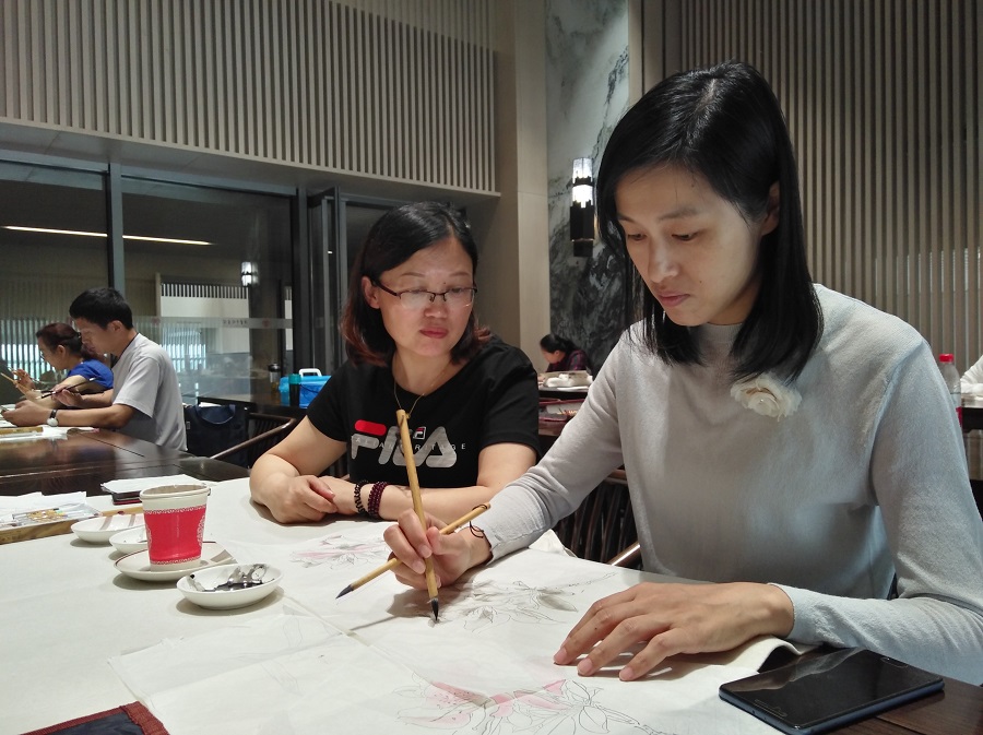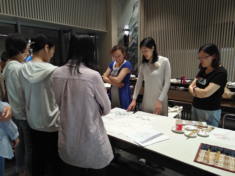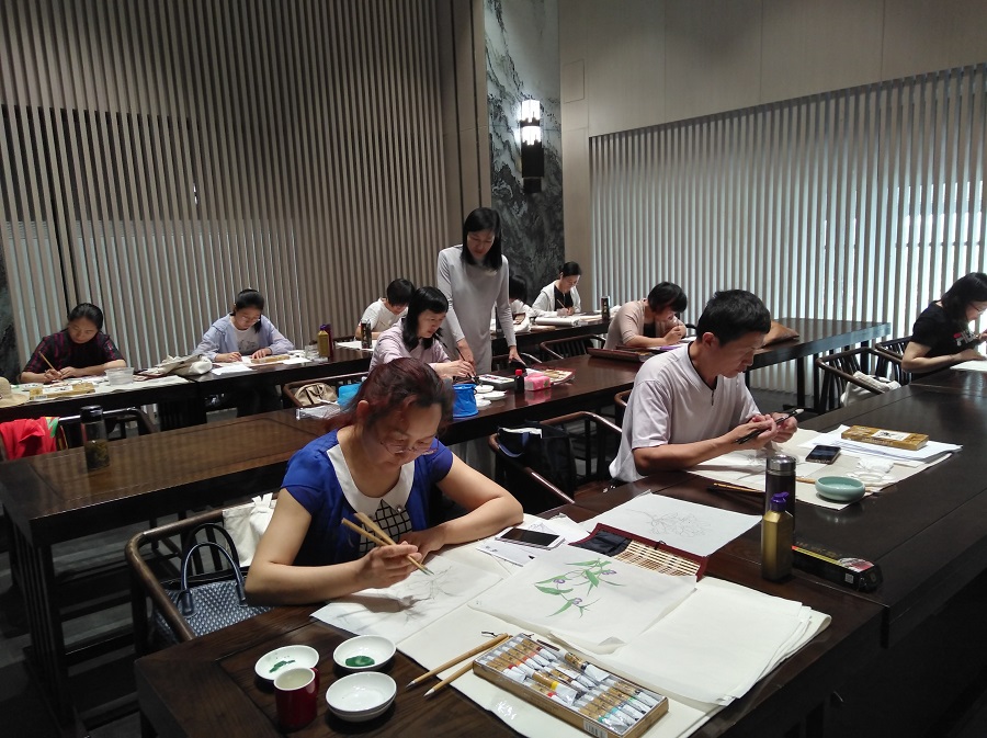 夏日骄阳似火,图书馆里清爽宁静,我们的工笔画小课如期进行,大家早早来到教室, 讲评作业——教授示范——现场练习指导——总结本节课情况,有序进行。大家一致表示,越来越喜欢工笔画,继续努力,争取每节课都有进步。