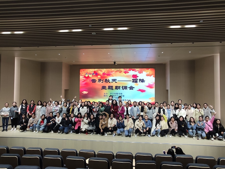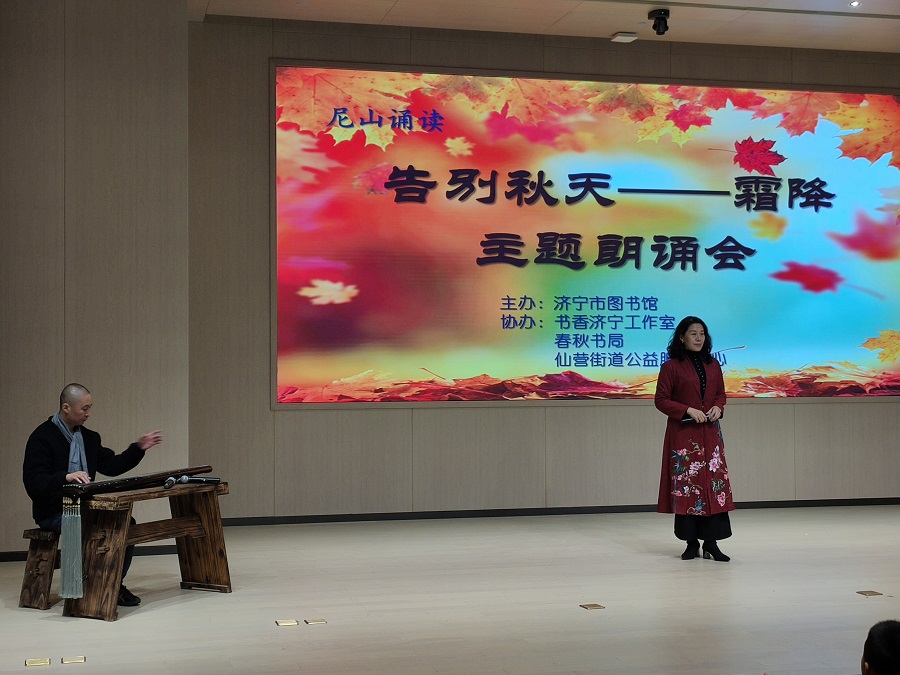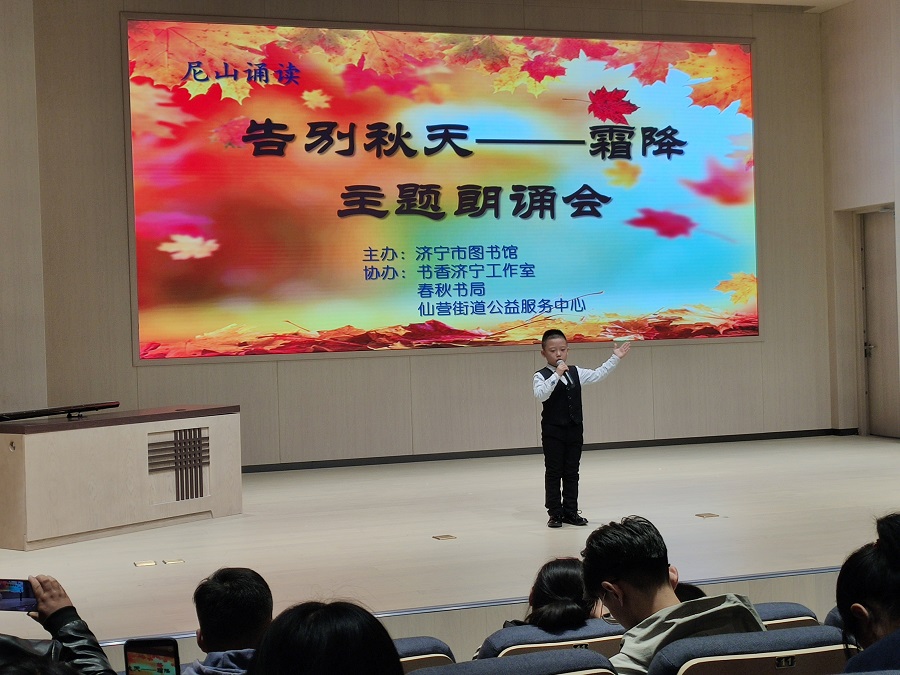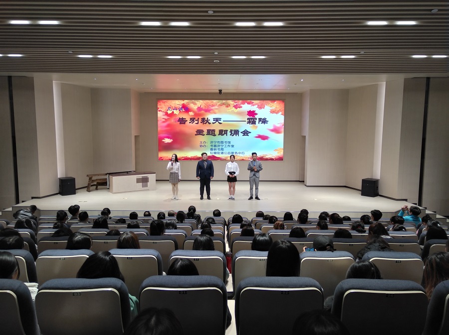 为了让我们感受岁月的重要节点,领略传统节气的文化内涵和古典情怀,10月27日上午由济宁市图书馆联合书香济宁工作室、春秋书局和仙营街道公益服务中心精心准备的《告别秋天——霜降主题朗诵会》在市图书馆一楼报告厅举行!