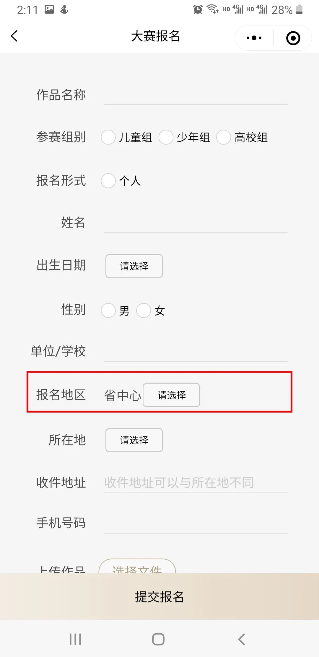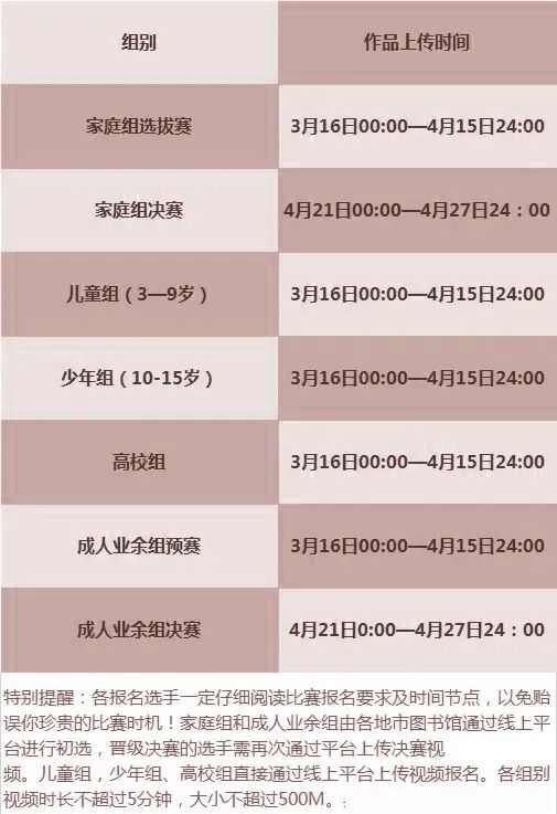 儿童组、少年组、高校组等参赛选手自行直接上传作品参赛,由省图书馆面向全省直接组织选拔。报名地区默认为“省中心”。