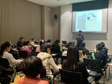 11月7日下午,济宁市图书馆“听听讲堂”邀请南池小学袁鹏老师与大家分享了迟子建的《会唱歌的火炉》。袁老师引用书中原话讲解书名的来历:“火炉的歌声使我懂得了生活的艰辛和朴素,懂得了劳动的快乐,懂得了温暖的获得是有代价的。”他讲道:迟子建的文字是诗意的,浪漫的。他节选书中部分段落,与大家一起朗读、分享,并拿教材、其它书上的文章和迟子建的文字对比,例如契诃夫《凡卡》中没有月亮的雪夜和书中有月亮的雪夜;萧红的《火烧云》和五花山经霜之后的秋叶;鲁迅的百草园、萧红祖父的大花园和“青翠的菜园”等等。他告诉大家要学会对比阅读,扩充知识储备。讲座现场,不少学生边听边做笔记,被文字的魔力深深吸引。