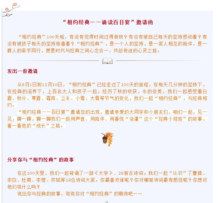 “相约经典——诵读百日宴”邀请函