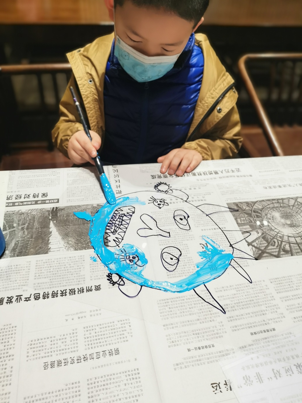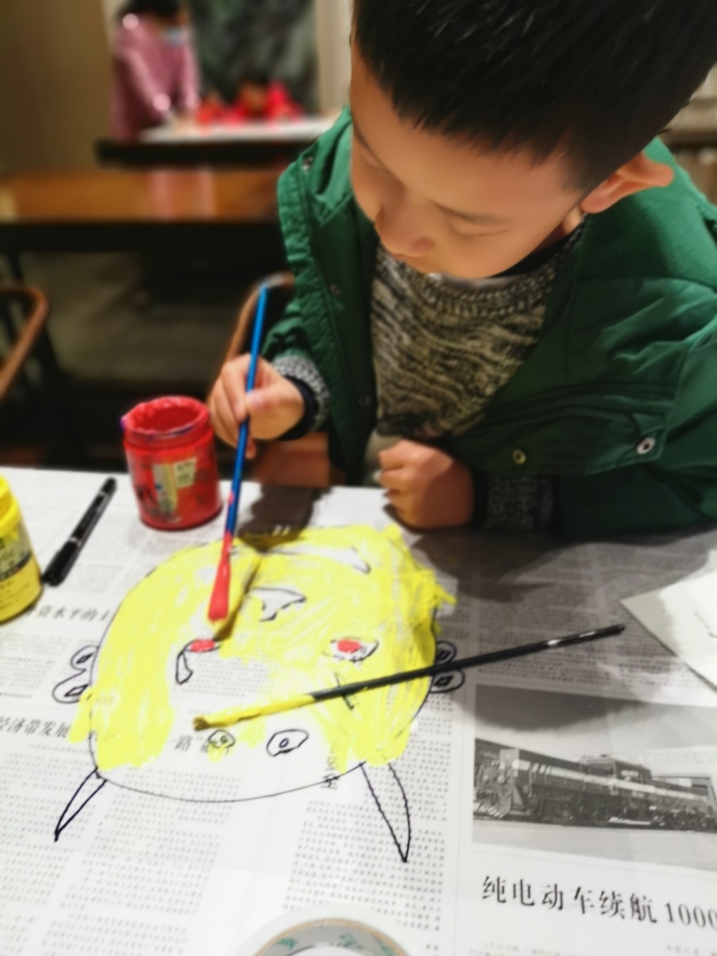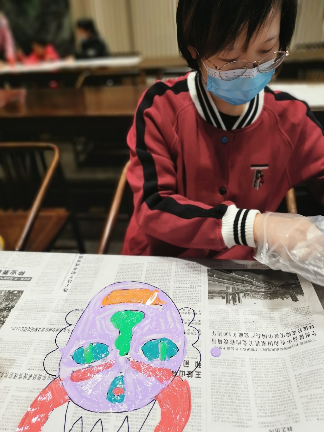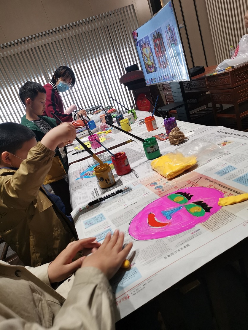 在最后环节的艺术体验课上,老师鼓励大家尝试新事物,用颜料、彩泥、麻绳制作了造型独特、表情丰富的傩脸。