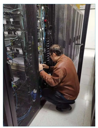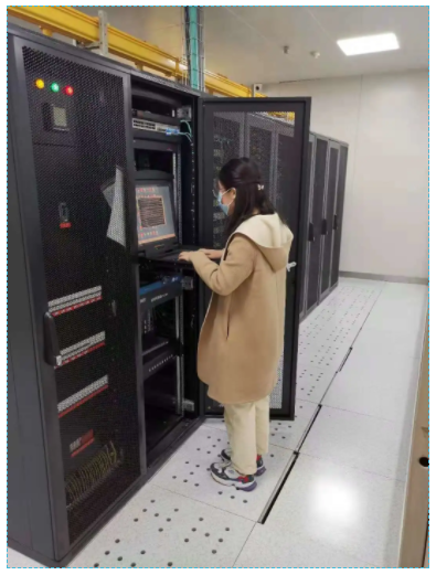 图为市图书馆技术部工作人员正在维护机房设备及数据库。